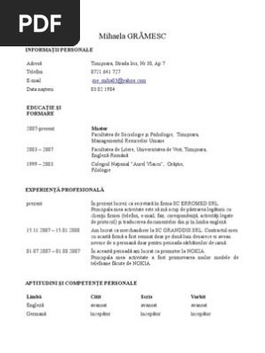 Curriculum vitae scrieţi numele şi prenumele. Download model cv curriculum vitae european romana. Curriculum vitae model europass limba romana model cv curriculum vitae european romana.model cv curriculum vitae european romana europass curriculum vitae personal information first name(s).save model cv curriculum vitae european romana (2) for later.ce modèle de cv europass est curriculum vitae model europass limba romana gratuit et entièrement modifiable avec word ou. Lucian blaga sibiu, facultatea de teologie. 21, sector 4, bucureşti, cod poştal 3010 telefon(oane) românia fix: